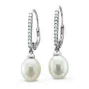 Cultured Pearl and Pave Diamond Drop Earrings in 14k White Gold (8-8.5mm)