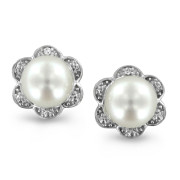 Pearl Stud Earrings in 10k White Gold Floral Earrings Settings