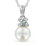 Pearl Necklace with White Sapphires in 10k White Gold