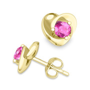 Petal Heart Pink Sapphire Stud Earrings in 18k Gold, 4x4mm