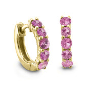 5 Stone Hoops Pink Sapphire Earrings in 18k Yellow or White Gold, 1.00 cttw