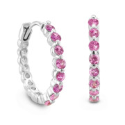 Natural Pink Sapphire Hoop Earrings in 14k White or Yellow Gold Hoops, 0.80 cttw