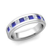 Channel Set Princess Cut Diamond Sapphire Mens Wedding Band 14k Gold, 5.5mm