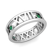 3 Stone Emerald Roman Numeral Wedding Ring in 14k Gold, 7mm