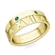 Harmony Roman Numeral Emerald Wedding Band in 18k Gold, 7mm