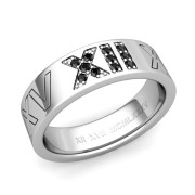 Roman Numeral Wedding Ring with Pave Set Black Diamond in Platinum