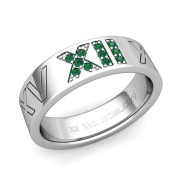Roman Numeral Wedding Ring with Pave Set Emerald in Platinum