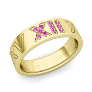 Roman Numeral Wedding Ring with Pave Set Pink Sapphire in 18k Gold