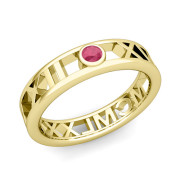 Bezel Set Ruby Roman Numeral Wedding Ring in 18k Gold, 5mm