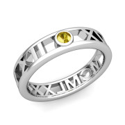 Bezel Set Yellow Sapphire Roman Numeral Wedding Ring in Platinum, 5mm