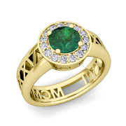 Roman Numeral Emerald Engagement Ring in 18k Gold Halo Setting, 5mm