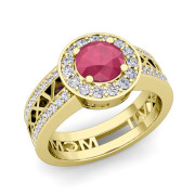 Roman Numeral Engagement Ring in 18k Gold Halo Ruby Ring, 6mm