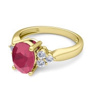 Three Stone Diamond and Ruby Engagement Ring in 18k Gold, 8x6mm