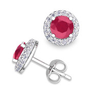 Pave Diamond and Ruby Earrings in 14k Gold Studs, 5mm