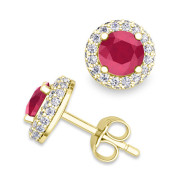 Pave Diamond and Ruby Earrings in 18k Gold Studs, 5mm
