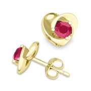 Petal Heart Ruby Stud Earrings in 18k Gold, 4x4mm