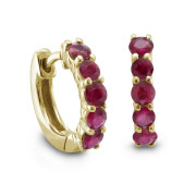 5 Stone Hoops Ruby Earrings in 14k Yellow Gold, 1.00 cttw