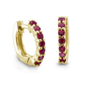7 Stone Hoops Ruby Earrings in 18k Yellow Gold, 0.70 cttw