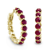 Natural Ruby Hoop Earrings in 18k Yellow Gold Hoops, 2.40 cttw