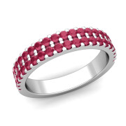 Two Row Diamond and Ruby Wedding Ring Band in 14k Gold