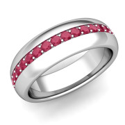 Pave Set Comfort Fit Ruby Wedding Band Ring in 14k Gold, 5.5mm