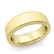 Milgrain Flat Wedding Ring in 18k Gold Comfort Fit Band, Satin Finish, 7mm