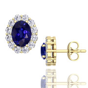 Oval Sapphire and Halo Diamond Earrings in 18k Gold, 7x5mm Studs