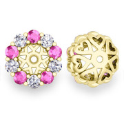 Halo Diamond and Pink Sapphire Earring Jackets in 18k Gold, 5mm