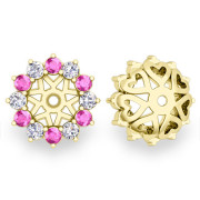 Pink Sapphire and Halo Diamond Earring Jackets in 18k Gold, 5mm