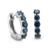 5 Stone Hoops Sapphire Earrings in 14k White or Yellow Gold, 1.00 cttw