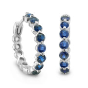 Natural Sapphire Hoop Earrings in 14k White or Yellow Gold Hoops, 2.40 cttw