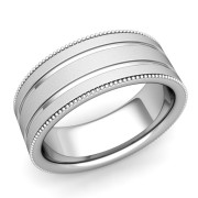 Milgrain and Groove Wedding Ring in Platinum Comfort Fit Band, Satin Finish, 8mm