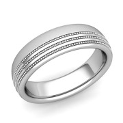 Milgrain Dome Wedding Ring in 14k Gold Comfort Fit Band, Satin Finish, 6mm
