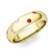 Scattered Ruby and Diamond Wedding Eternity Band in 18k Gold, 5mm