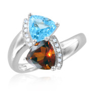 Natural Citrine, Blue Topaz and Diamond Ring in Sterling Silver