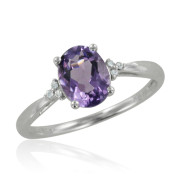 White Sapphire and Oval Amethyst Ring in 10k White Gold, 8x6mm