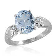 Diamond and Oval Aquamarine Ring in 14k White Gold Band (H, SI2, 2.13 cttw)