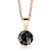 6-Prong Rose Cut Black Spinel Pendant with 14k Rose Gold Chain Necklace, 0.85 cttw