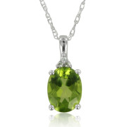 White Sapphire and Solitaire Peridot Pendant Necklace in 10k White Gold