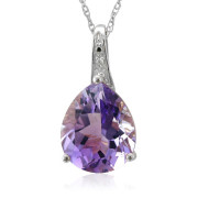 Pear Shaped Amethyst Necklace in 10k White Gold, Diamond Accent