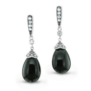 Onyx and White Topaz Tear Drop Earrings in 14k White Gold