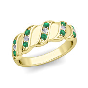 Twisted Diamond and Emerald Wedding Ring Band in 18k Gold, 5mm