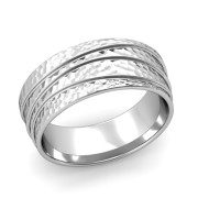 Wave Comfort Fit Wedding Ring in Platinum Hammered Finish Band, 8mm