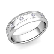Unique Diamond Anniversary Ring in Platinum Shiny Wedding Band, 6mm