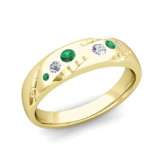 Mens Flush Set Diamond and Emerald Wedding Band in 18k Gold, 6mm