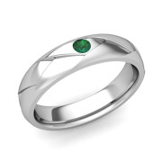 Solitaire Emerald Anniversary Ring in Platinum Shiny Wedding Band, 5mm