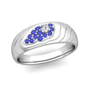 Contour Diamond and Sapphire Mens Wedding Ring Band in Platinum, 7.25mm