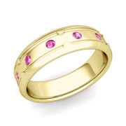 Unique Pink Sapphire Anniversary Ring in 18k Gold Shiny Wedding Band, 6mm