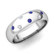 Comfort Fit Scattered Sapphire and Diamond Mens Wedding Band in 14k Gold, 6mm