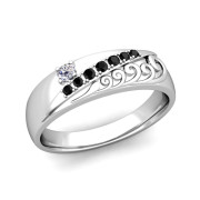 Rolling Wave Black and White Diamond Mens Wedding Band in 14k Gold, 6.25mm